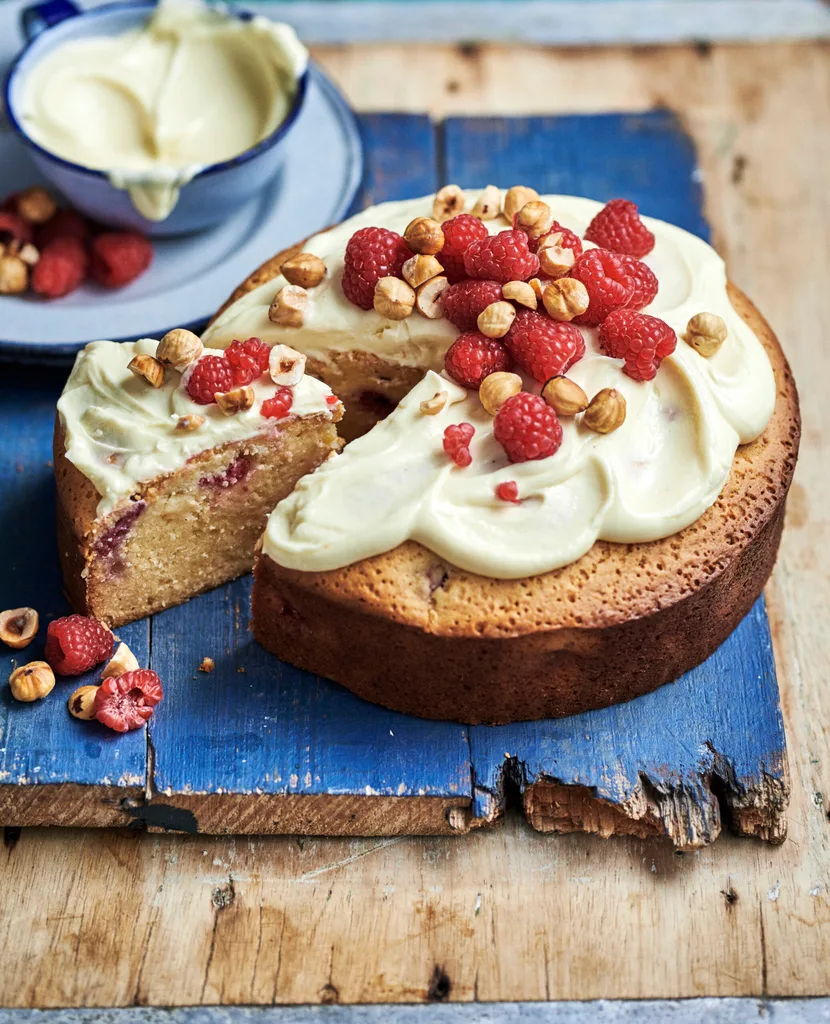 Rich, chocolatey tiramisu cake with mascarpone cream and plump, fresh raspberries makes a fine end to a special dinner.