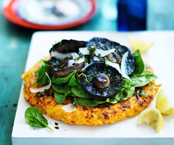 Sweet potato rösti with grilled mushrooms are perfect for breakfast or a light lunch.
