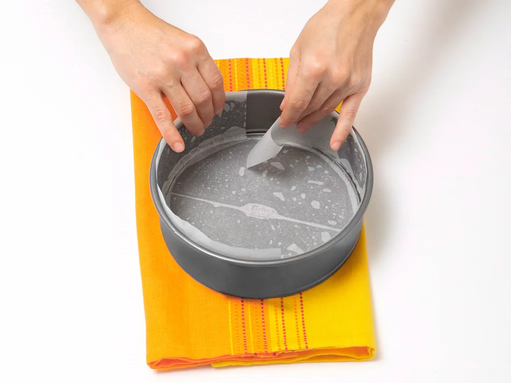 If you’re lining a pan with baking paper, grease the sides of the pan first – this holds the paper in place. In most cases, it is not necessary to grease the baking paper as well.