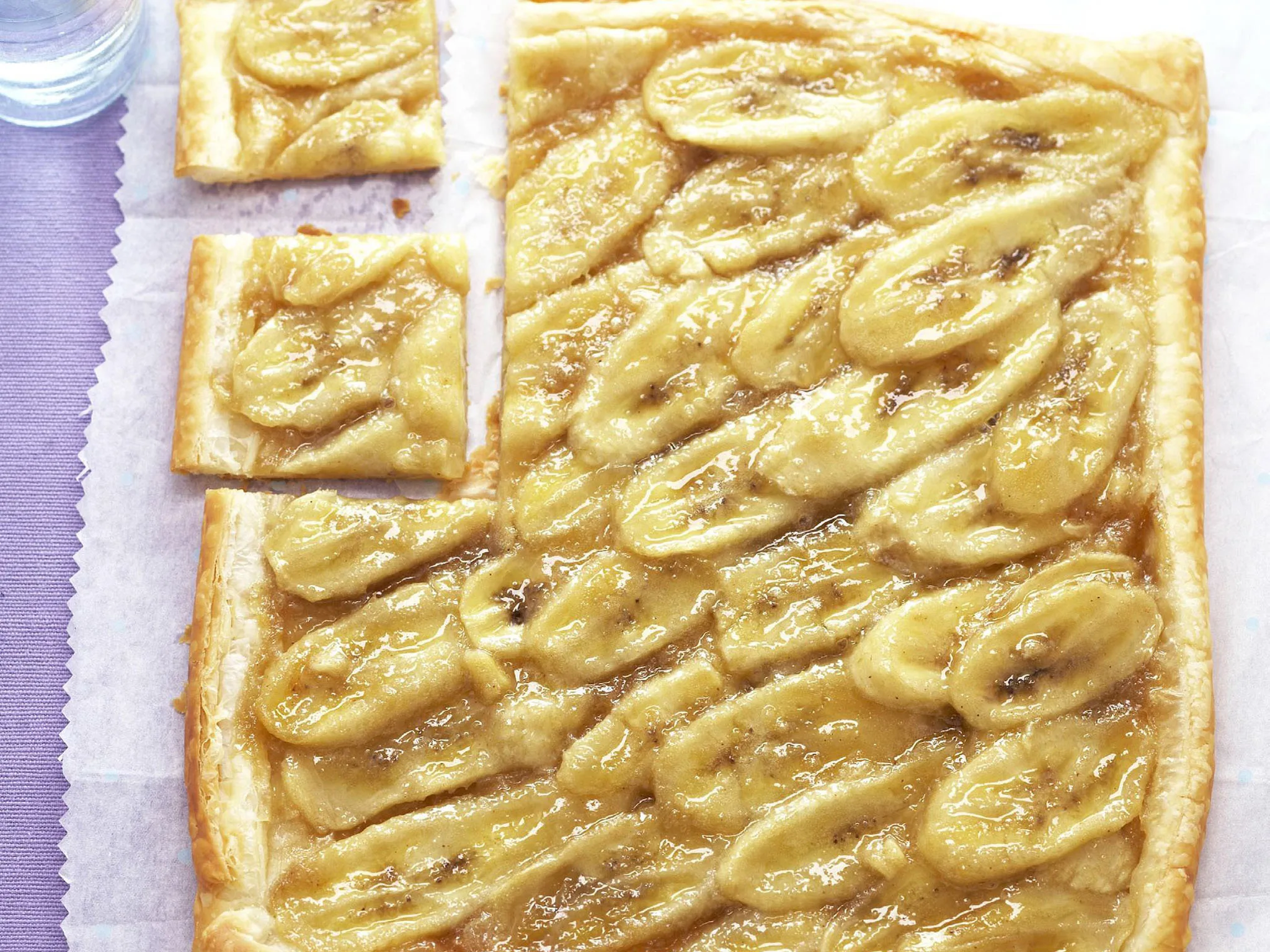 4.Use tongs, place the banana mixture on the pastry. Bake about 10 minutes and allow to cool for 20 minutes before serving.