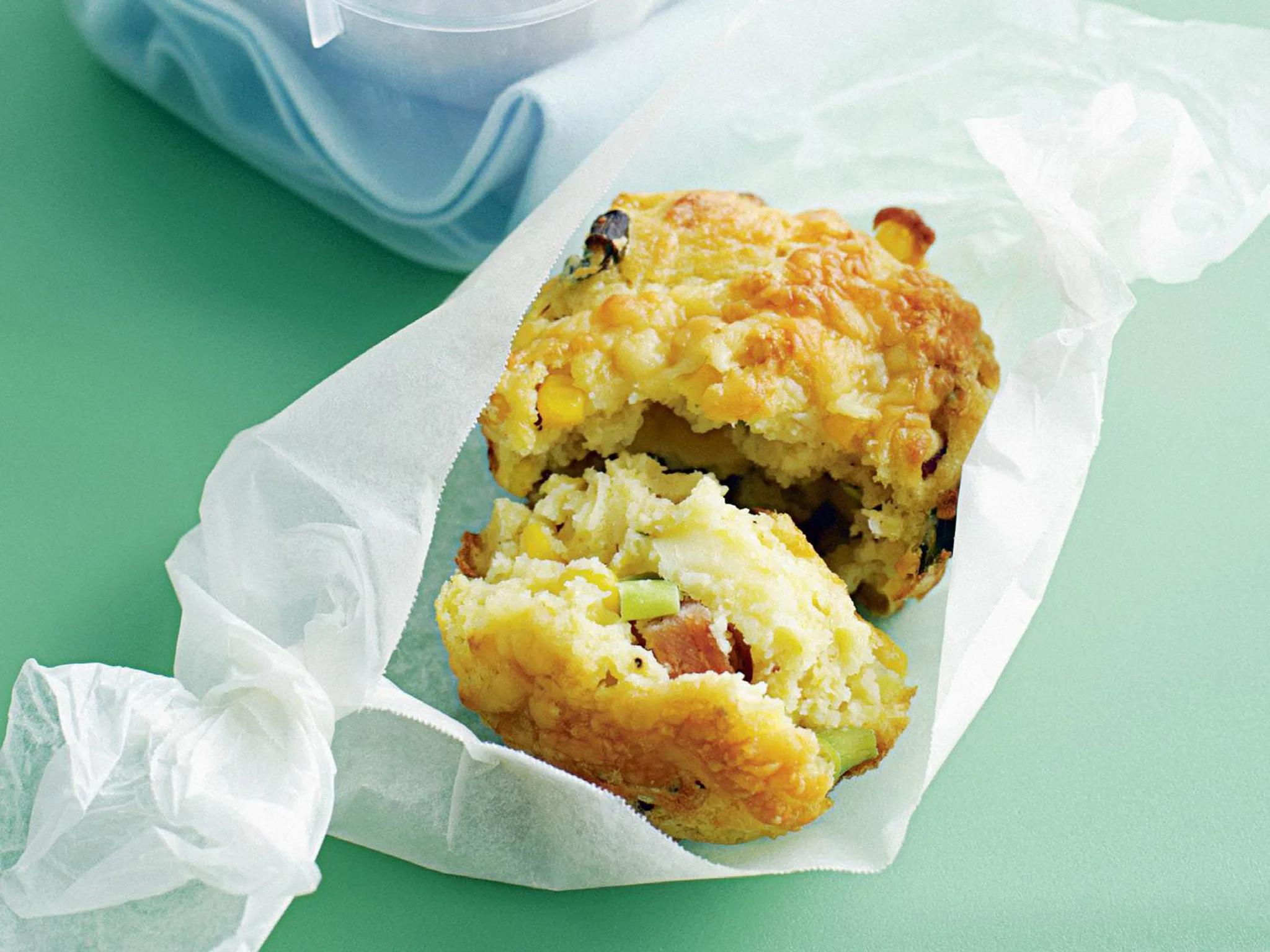3.Add egg, butter and both corns to polenta mixture; whisk to combine. Add bacon mixture and sifted flour; stir until just combined.