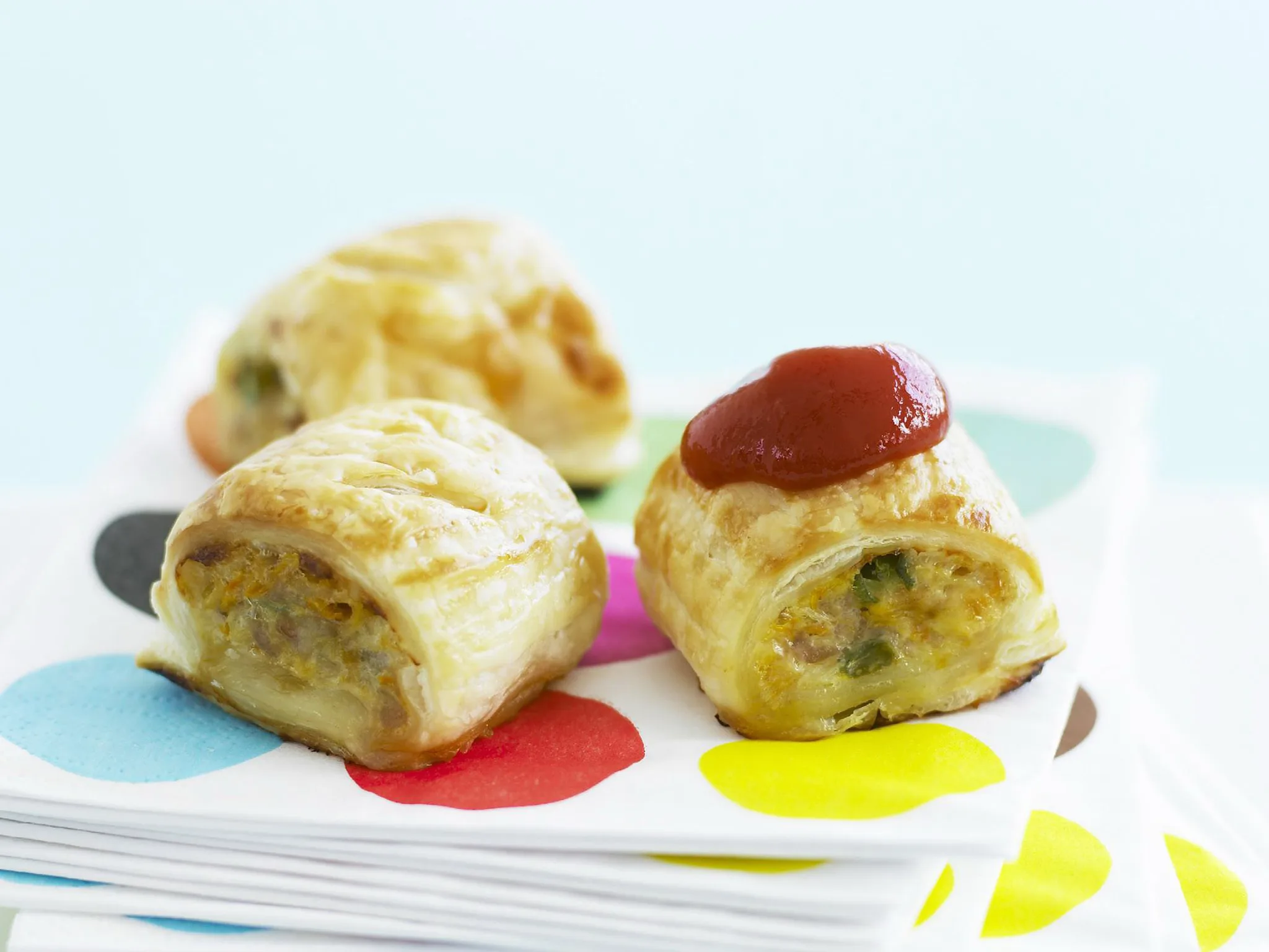 You can use a large piping bag fitted with a large plain tube to pipe chicken mixture onto pastry. Rolls can be cooked one day ahead; keep, covered, in refrigerator. Reheat rolls in single layer on oven trays, covered loosely with foil, in 180°C/350°F oven for about 15 minutes.