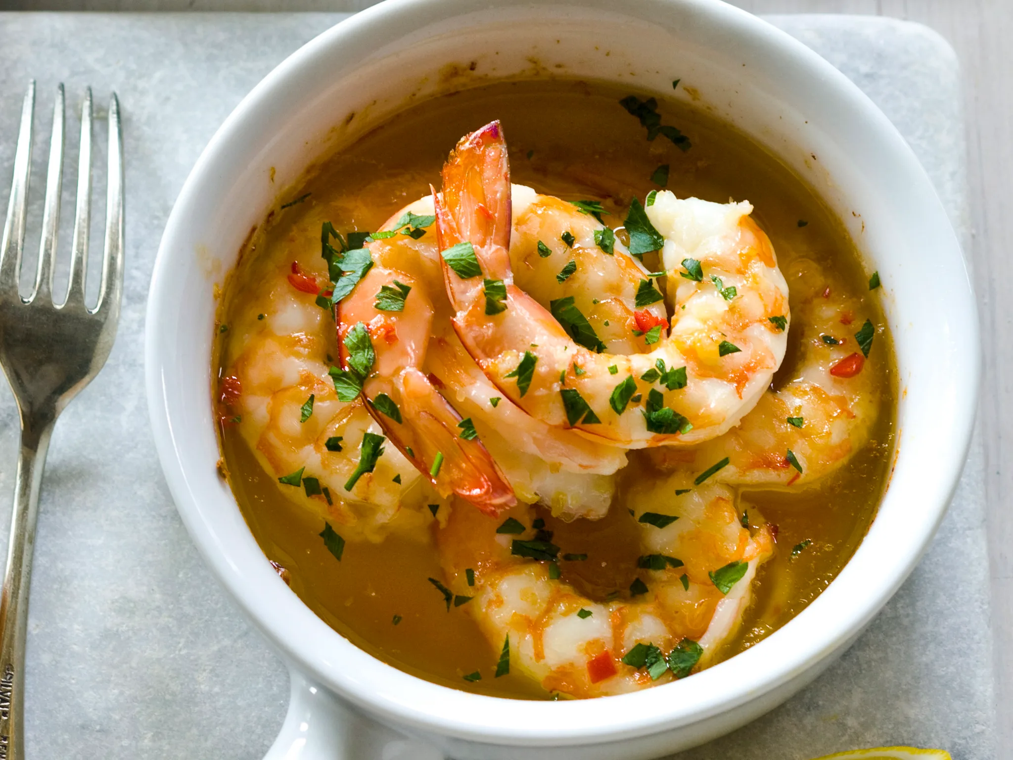 4.Transfer to oven to cook for 10 minutes then remove and place 6 prawns into each pot.
