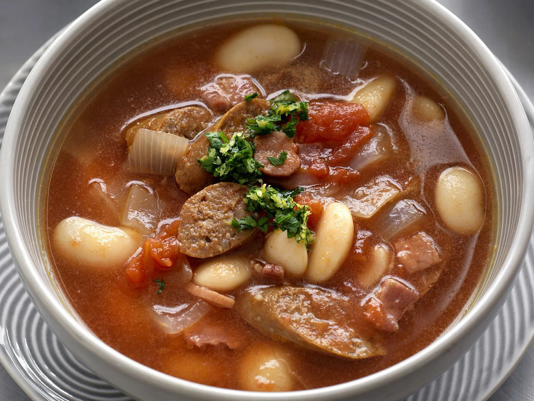 3.Add sausage to soup with beans; stir until soup is hot.