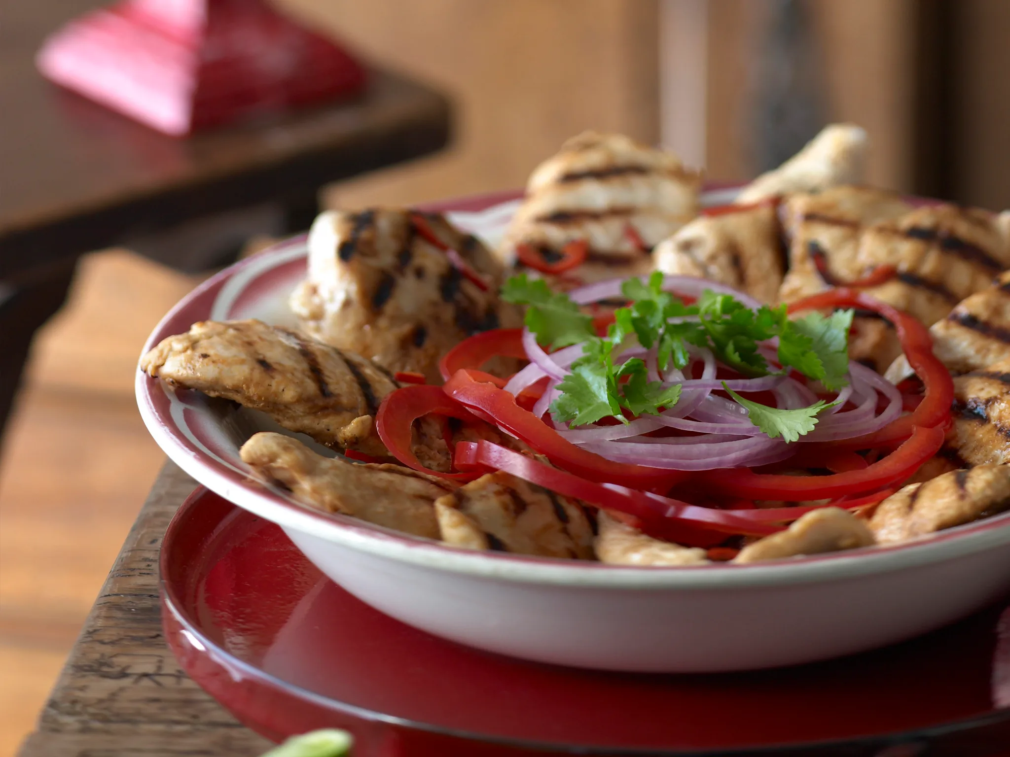 3.Toss onion rings in remaining lime juice. Arrange turkey on a platter, scatter with capsicum, onion, coriander and juice. Serve hot or at room temperature.