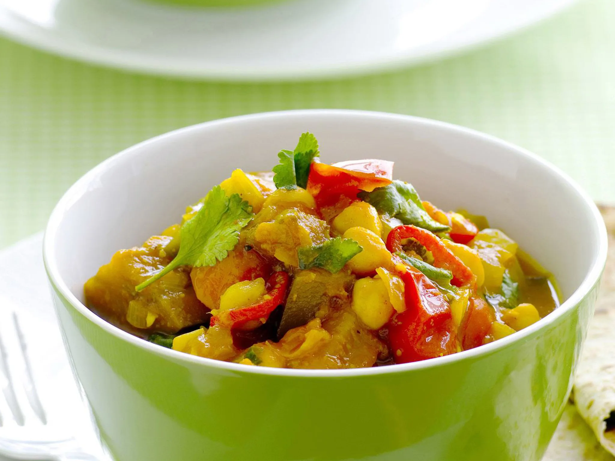 3.Add chickpeas, cook, covered, on high (100%) a further 5 minutes or until vegetables are tender, stirring halfway through cooking.