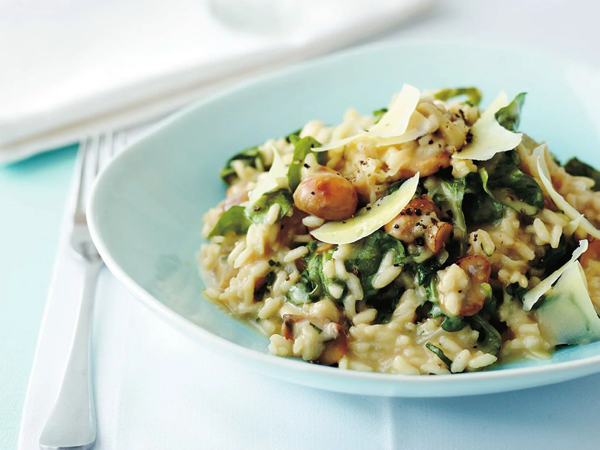 5.Stir in mushroom mixture, parsley, cheese, extra butter and rocket. Top with extra parmesan cheese flakes, if desired.