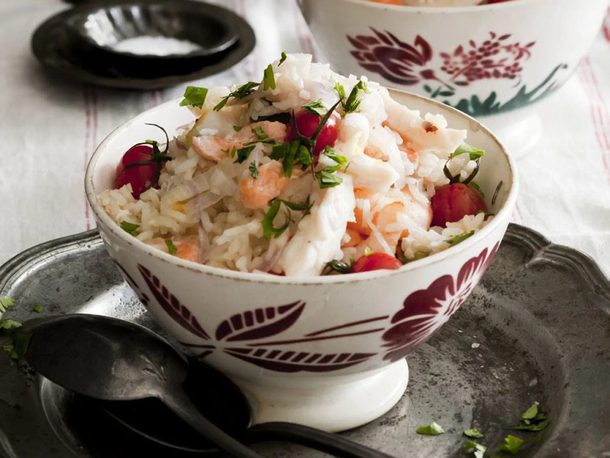 3.Stir in rice and stock; secure lid. COOK 10 minutes, stirring occasionally. Add seafood, juice, chilli and tomatoes; secure lid. COOK about 5 minutes or until cooker automatically switches to KEEP WARM.