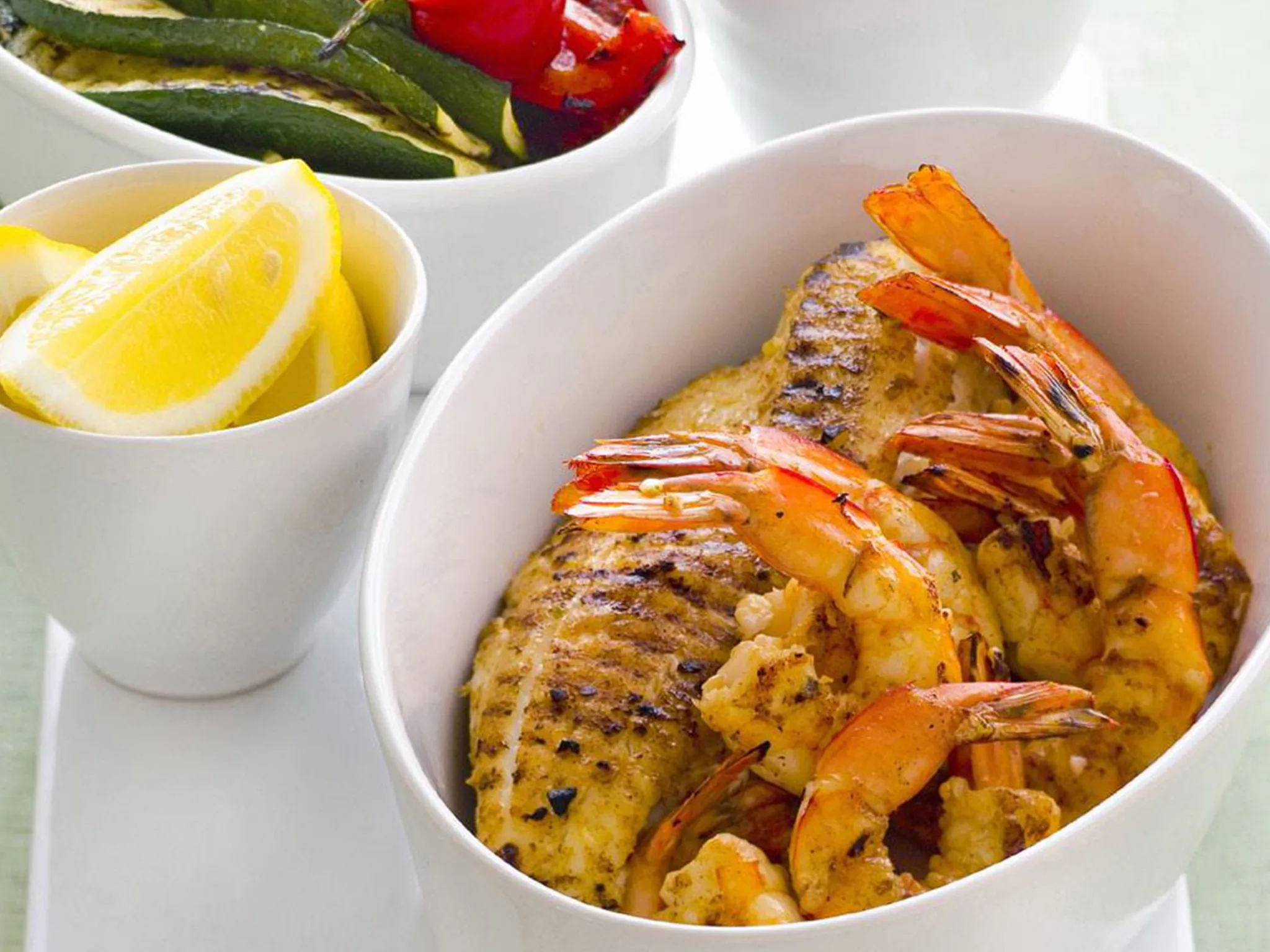 4.Cook seafood on heated grill plate. Serve seafood and vegetables with aïoli and lemon wedges.