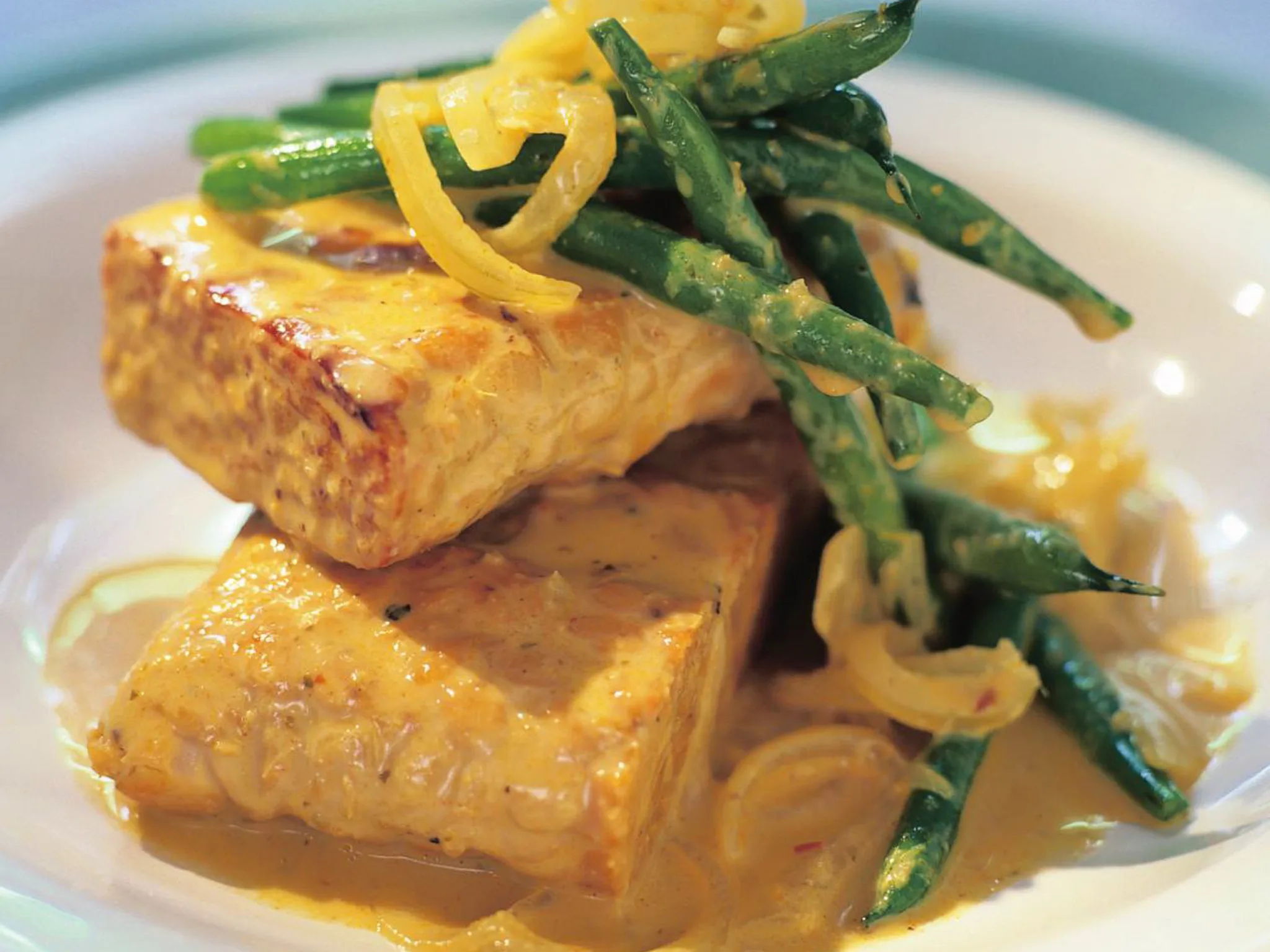 2.Heat pan over low and cook onions about 10 minutes or until very soft. Add garlic and beans; cook, stirring occasionally, until beans just change in colour. Stir in curry paste and coconut milk; bring to a boil. Reduce heat; simmer, uncovered, about 5 minutes or until thickened slightly.