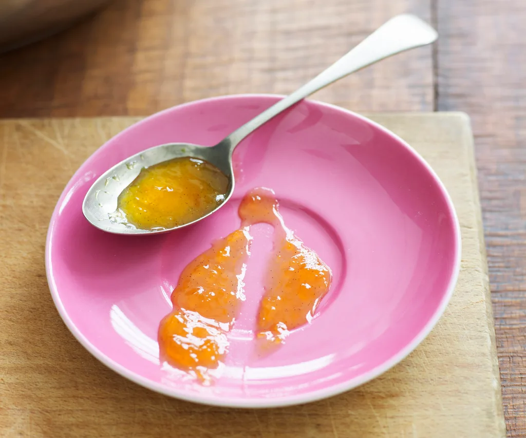2.Meanwhile, place a small saucer in the freezer. Test if the jam is ready by dropping a small spoonful onto the cold saucer. Return the plate briefly to the freezer to cool the jam to room temperature. When it has cooled, test the consistency. lt should have formed a skin and be of a firm consistency. Remove saucepan from heat; stand for 10 minutes. Pour jam into sterilised jars. Seal with a lid while hot; cool. Keep refrigerated.