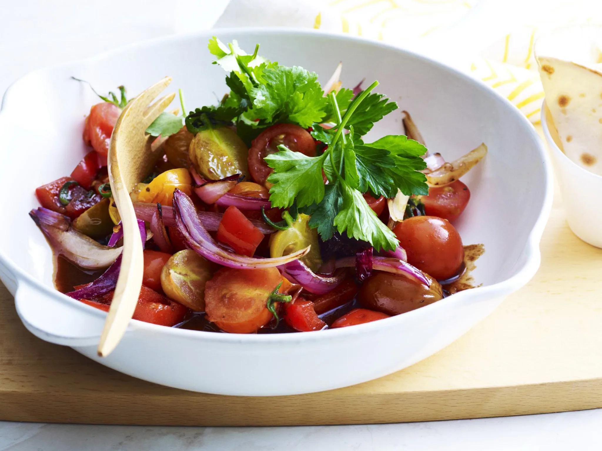 4.Serve tomato mixture with tortillas and sprinkle with coriander and parsley