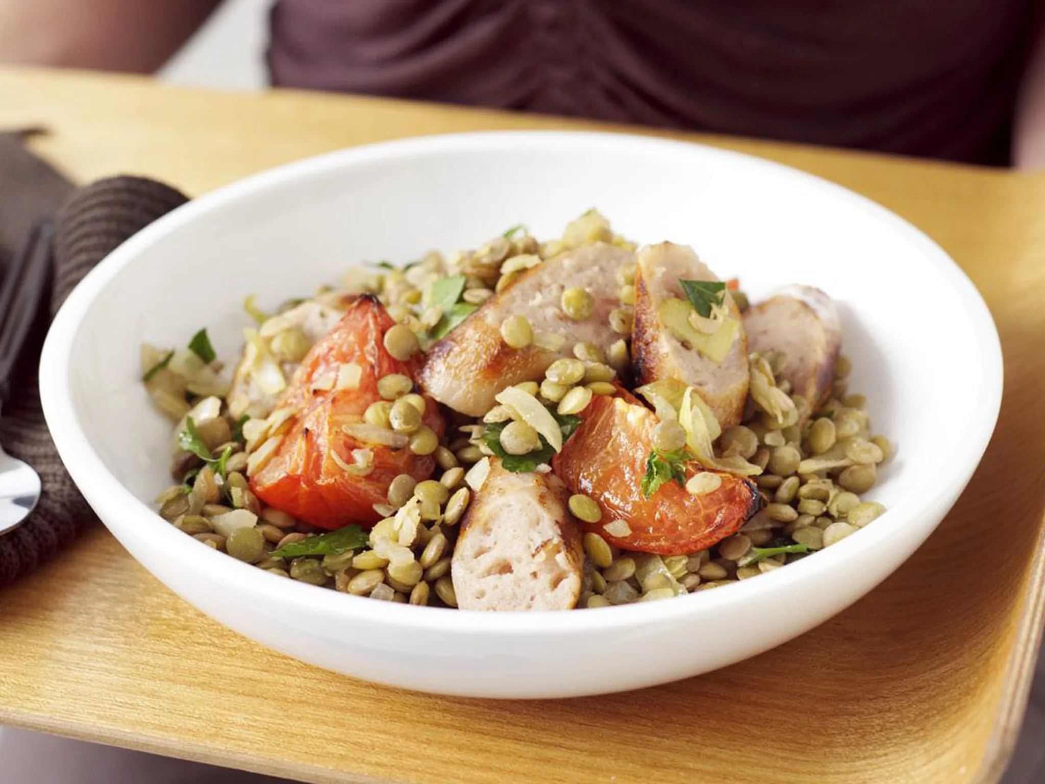 9.Add remaining vinaigrette, sausage, tomato and parsley to bowl with lentil mixture; toss gently before serving.