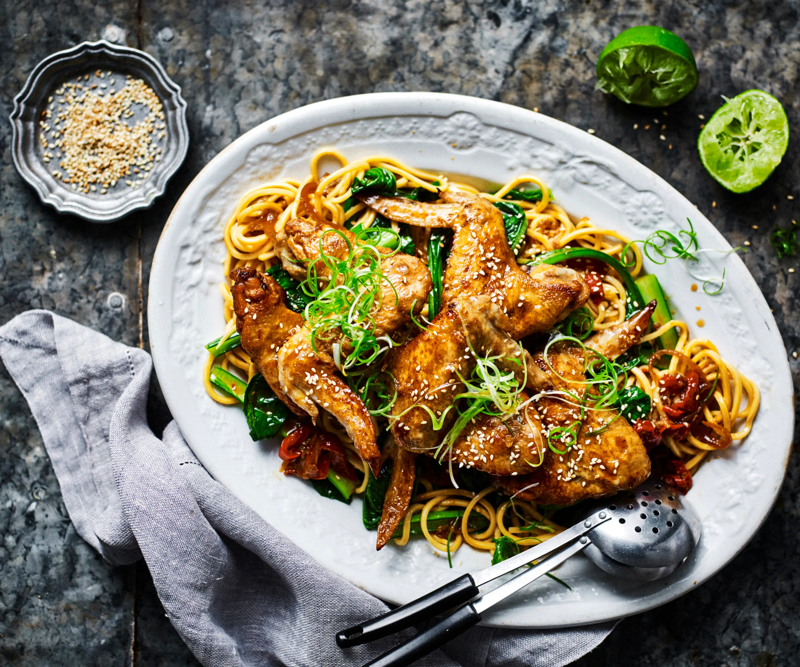 Your slow-cooker can be used for so much more than lamb shanks and casserole. Tender soy-glazed chicken wings cooked low and slow then finished with Singapore-style noodles and choy sum for a flavourful midweek meal.