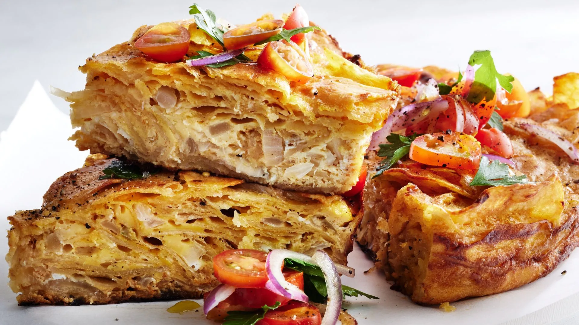 This quick and easy tortilla recipe is inspired by a Spanish omelette and uses salt & vinegar chips instead of potatoes for a midweek dinner shortcut. This tortilla recipe is delicious eaten warm or cold for a light dinner or served as part of a tapas board. Leftovers can be eaten in a sandwich.