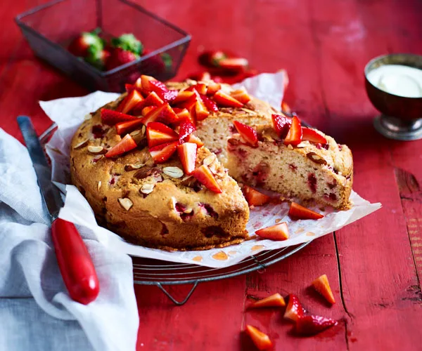 Melt-and-mix strawberry yoghurt cake